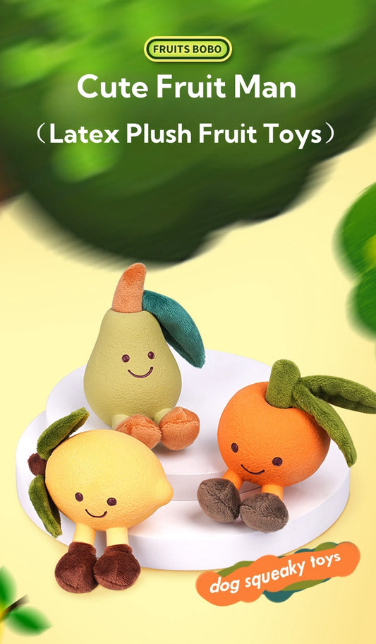 Baabaa Pet Dog Chew Toys for Puppy, Cute Fruity Man Latex and Plush Squeaky Puppy Toys for Teething Small Dogs